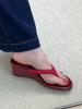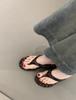 Sheepskin version~ French niche leopard print wedge heel flip-flops women's outer wear 2025 summer thick heel pinch sandals