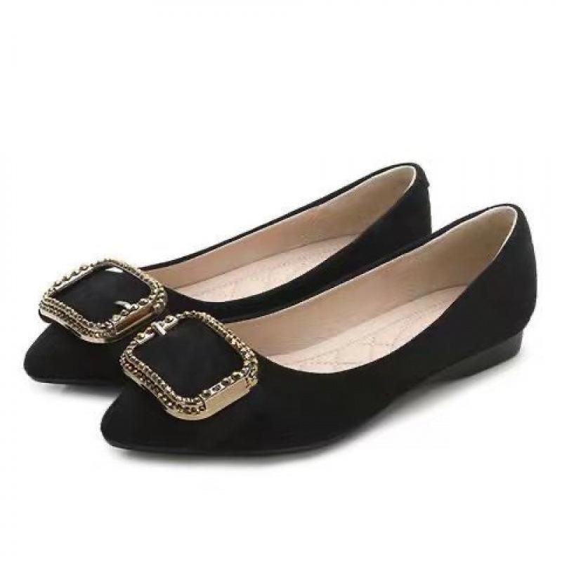 Single shoes pointed flat bottom work shoes 2025 new comfortable and versatile shallow mouth women's shoes foreign style Doudou shoes black suede