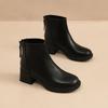 Soft leather short boots women's square head thick heel new autumn and winter single boots medium heel French white soft leather thin boots women