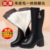 Soft Leather Boots Women's Boots Winter Fleece Cotton Boots Thickened Cotton Hair Tall Heel Women's Boots Mom Medium Boots