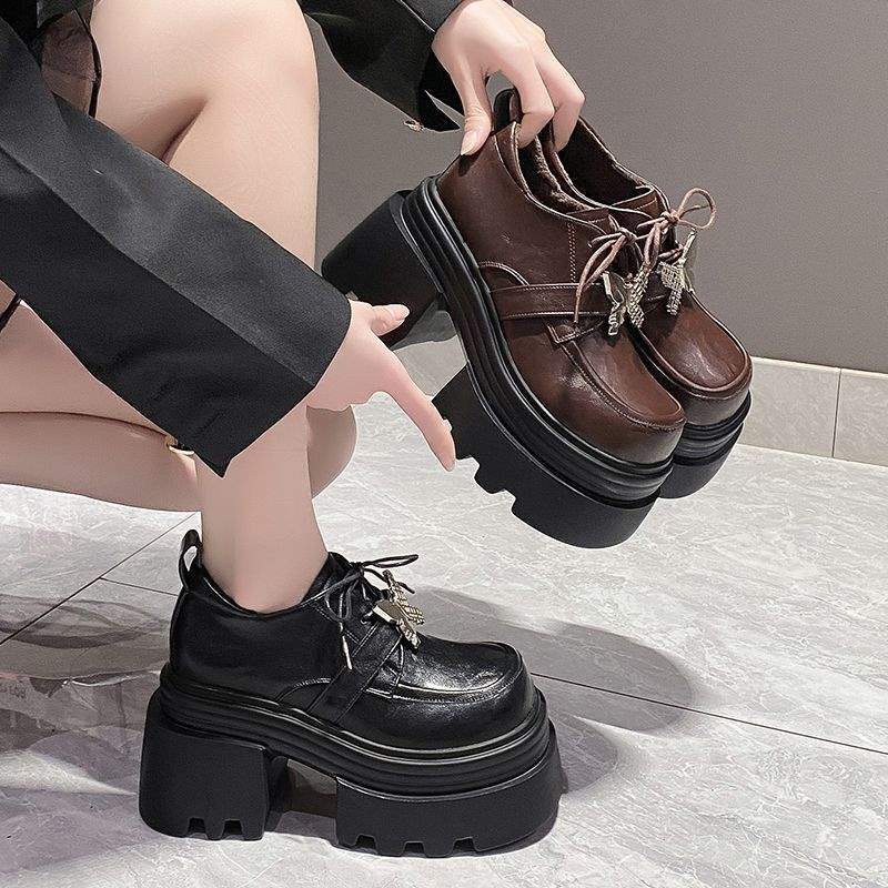 British style platform thick-heeled loafers women's 2025 autumn and winter new velvet fashion versatile black high-heeled small leather shoes