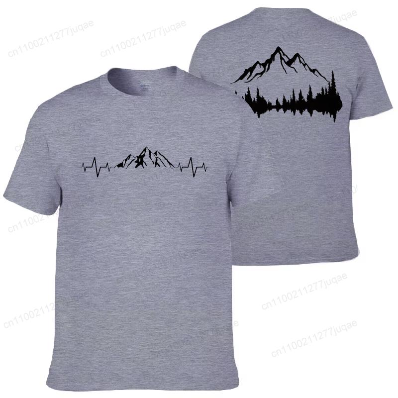 Summer Men's Clothing Casual Loose Tees Mountains and Trees Print Sports O Neck Short Sleeve T-shirt Mountains Heartbeat Tops