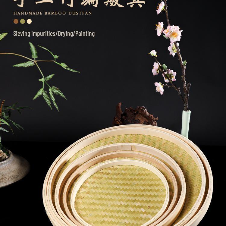 Bamboo Weaving Green Winnowing Basket/Restaurant Sashimi Platter with or without Holes for Drying, Sieving, Tea Sampling, or Decorative Use