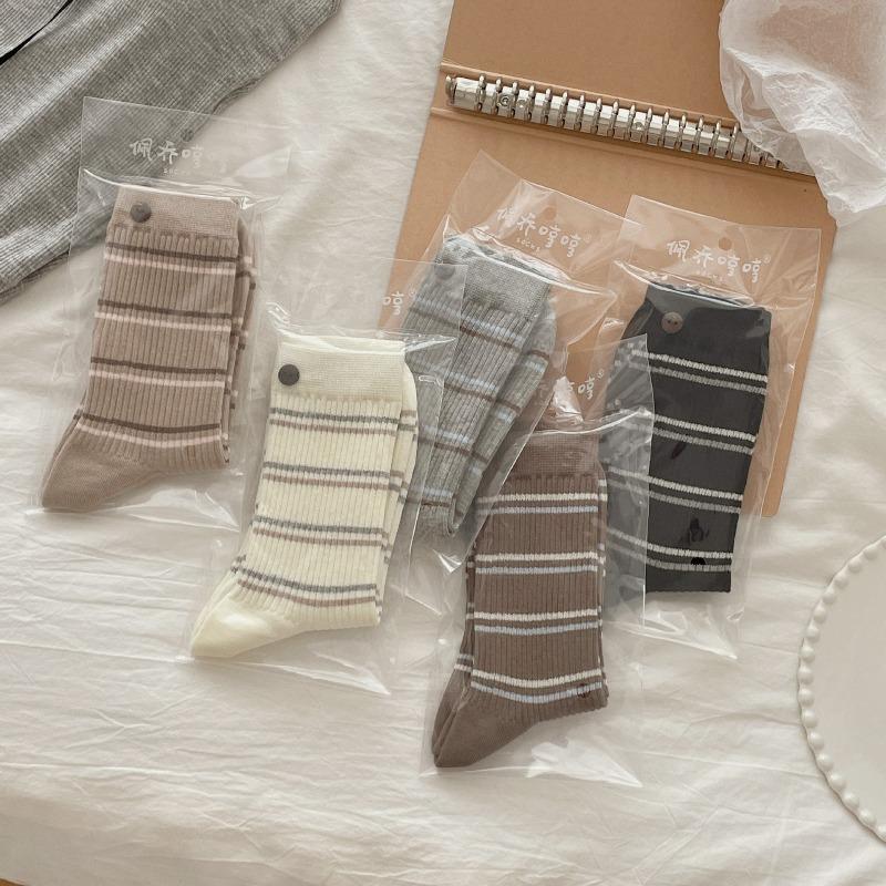 Autumn and Winter Micro-pressure Anti-pilling Boneless Pure Cotton Pile Socks, Personalized and Trendy Button School Style Thigh-high Socks