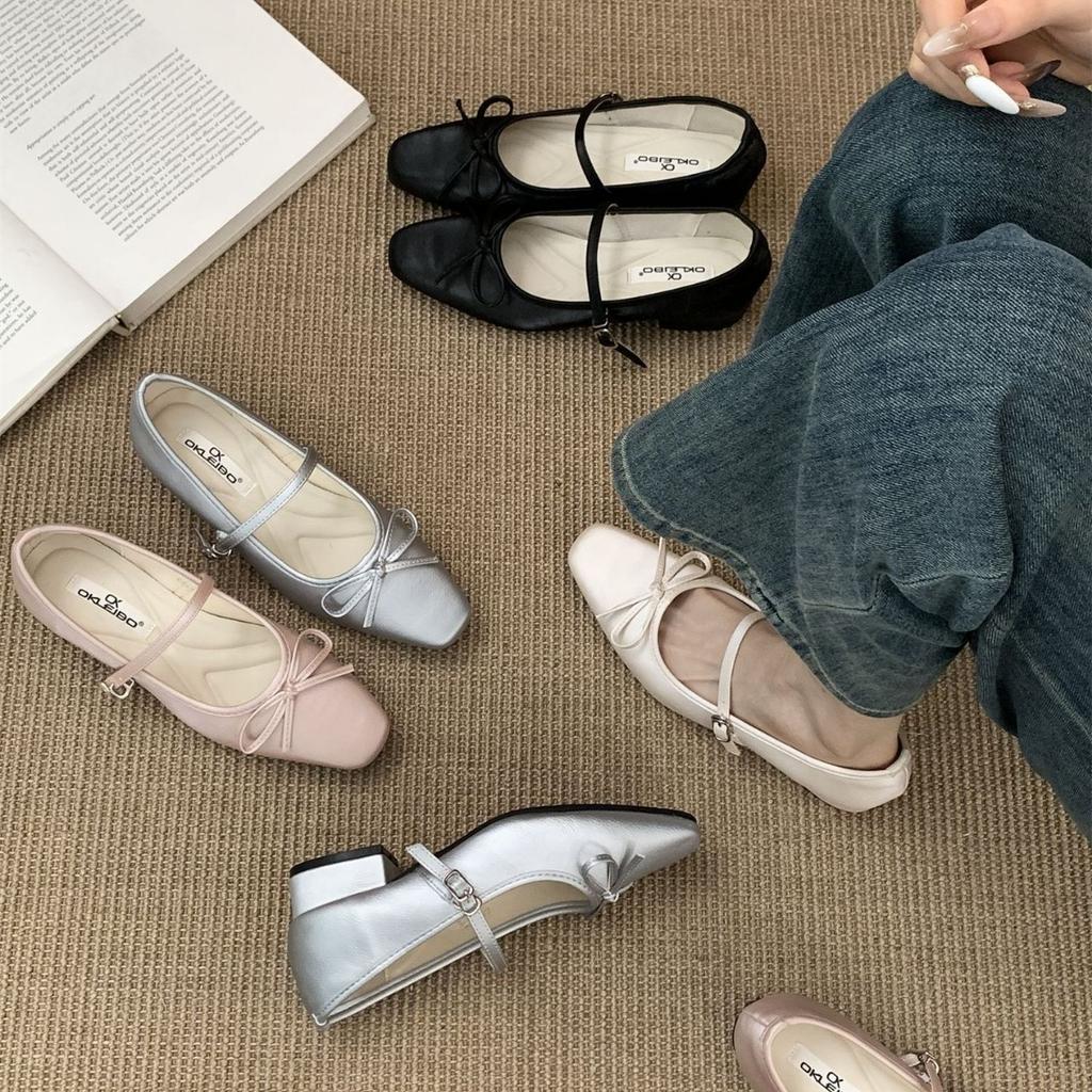 French evening breeze bow niche Mary Jane shoes women's 2025 autumn new thick heel with skirt single shoes ladyshoes