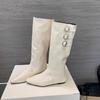 2025 autumn new fashion pointed inner height increase boots femininity versatile belt buckle sleeve fashion boots
