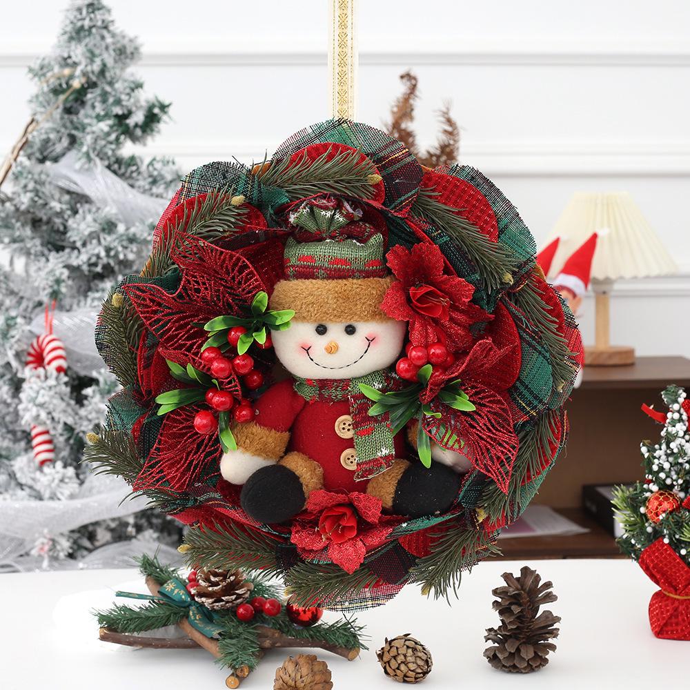 Cross-border Christmas Snowman Wreath Ornament: Creative Holiday Hanging Decoration