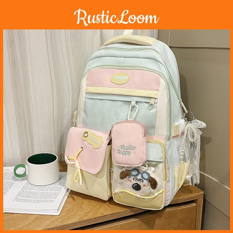 Sweet Blocked Color Letter Patter Student Backpack With Compartment Transparent