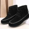 Fashion Women's Boots 2025 New Hot Sale Shoes for Women Lace Up Winter Round Toe Solid Flock Short Barrel Large Size Tassel Roman Boots