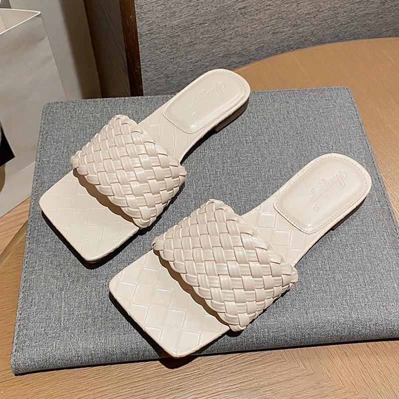 Fashion 2025 Luxury Knitted Leather Shoes Femme Summer Slippers Cross Weave Flat Sandalias Mujer Open Toe Slides Clogs Woman Flip Flops