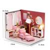 Casă de păpuși mini din lemn, puzzle 3D de asamblat, model de construcție, jucării, decorațiune pentru casă, dormitor, cu mobilier, lumini LED, jucărie, cadouri de Crăciun
