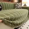 Simple Chenille Sofa Towel Green Stripe Pattern Universal One-Piece Sofa Blanket Pet Friendly Sofa Covers Decor Living Room