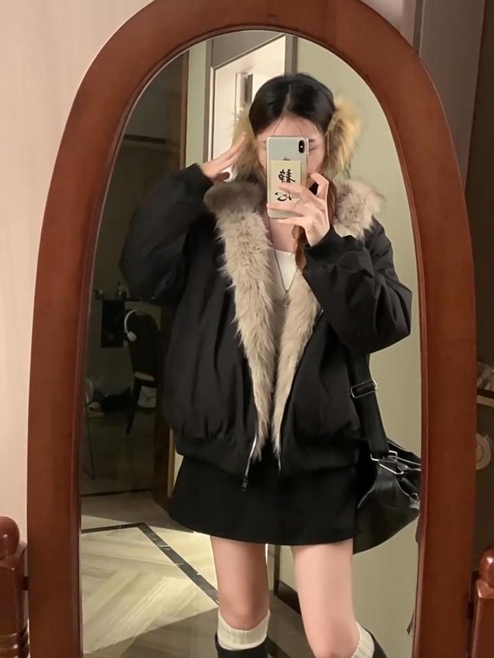Winter Thick American Vintage Two-Sided Sherpa Coat Hooded New Cotton Thick Fashion Plus Size Cotton Jacket