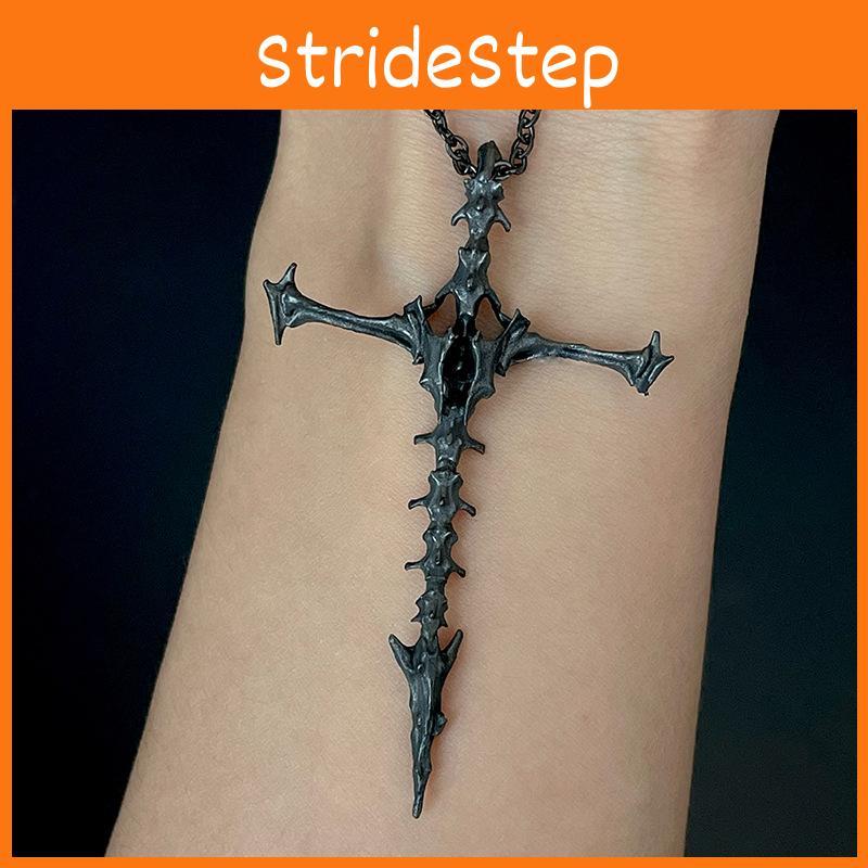 Black Unique Gothic Cross Skeleton Pendant Necklace Stylish Alloy Jewelry For Trendy Men And Women