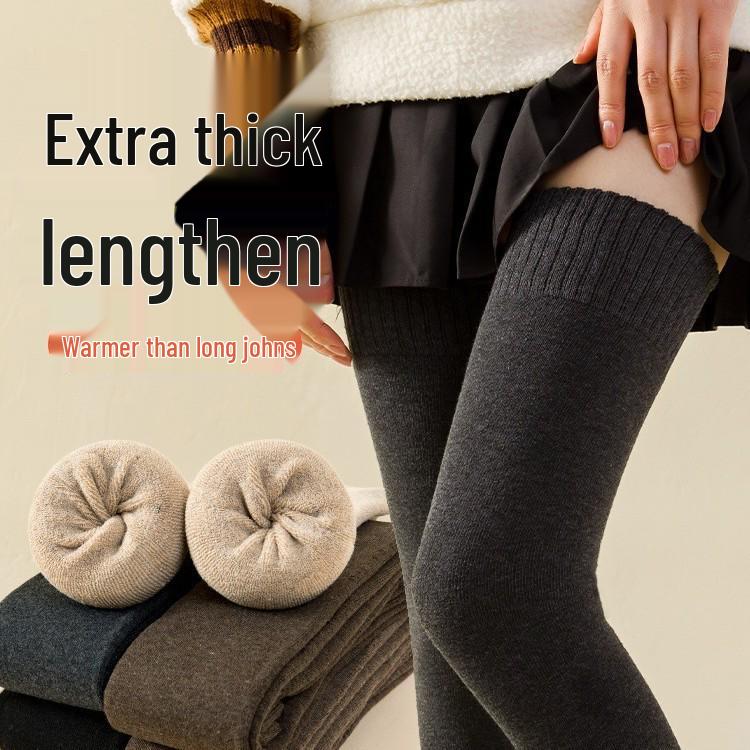 Women's Black Fleece-Lined Over-the-Knee Socks with Knee Pads - Thick, Slimming, and Warm for Autumn and Winter