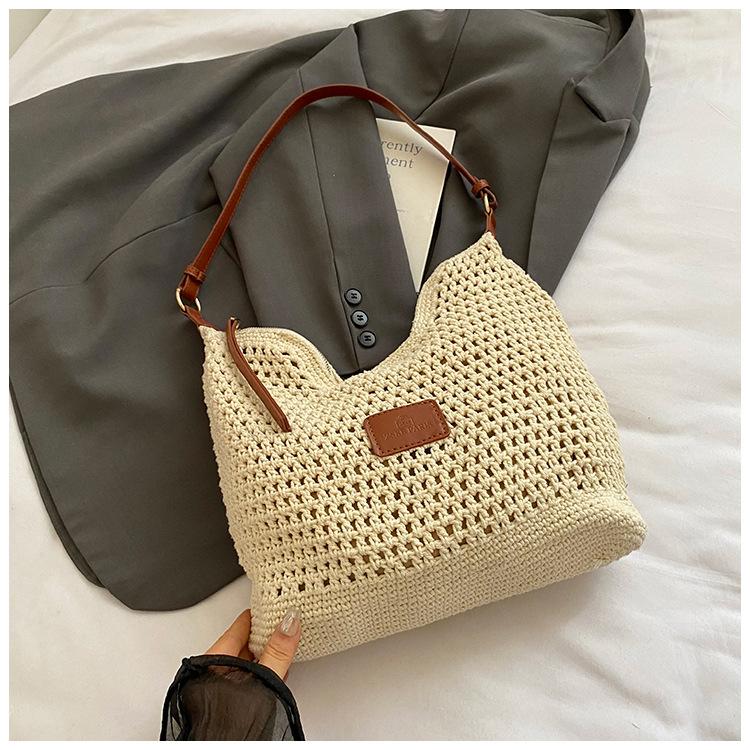 Woven hollow bag women's 2025 new summer seaside vacation travel tote bag beach bag armpit bag