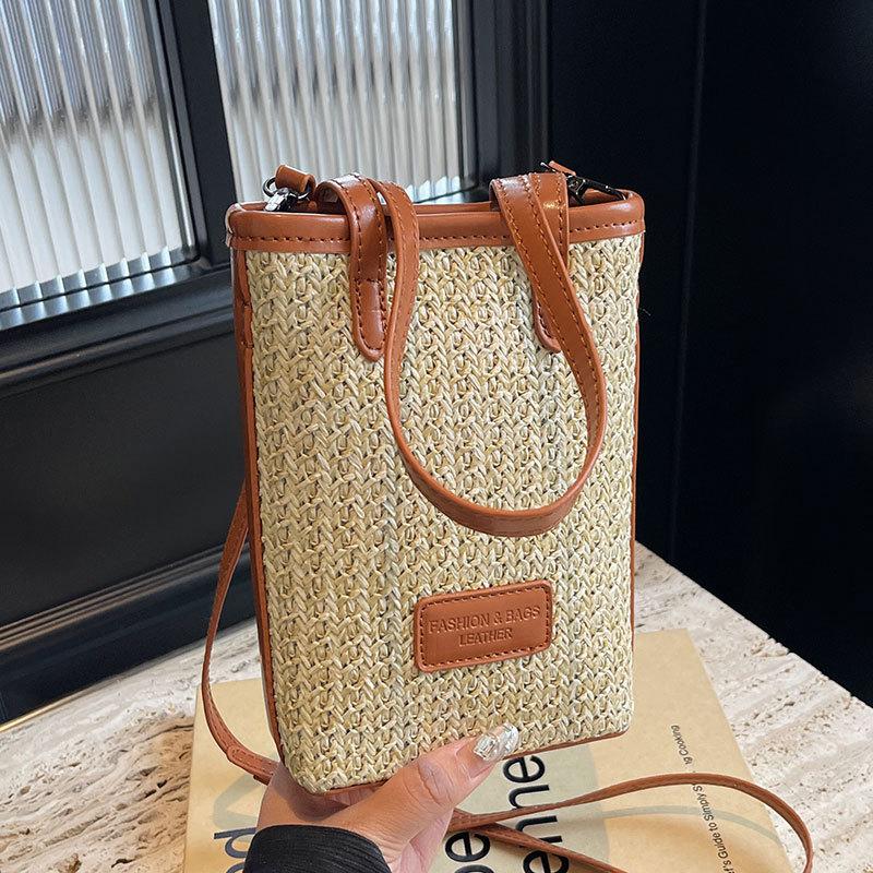 Niche lightweight versatile rainbow straw mobile phone bag spring and summer explosion leisure vacation style commuter messenger bag woman