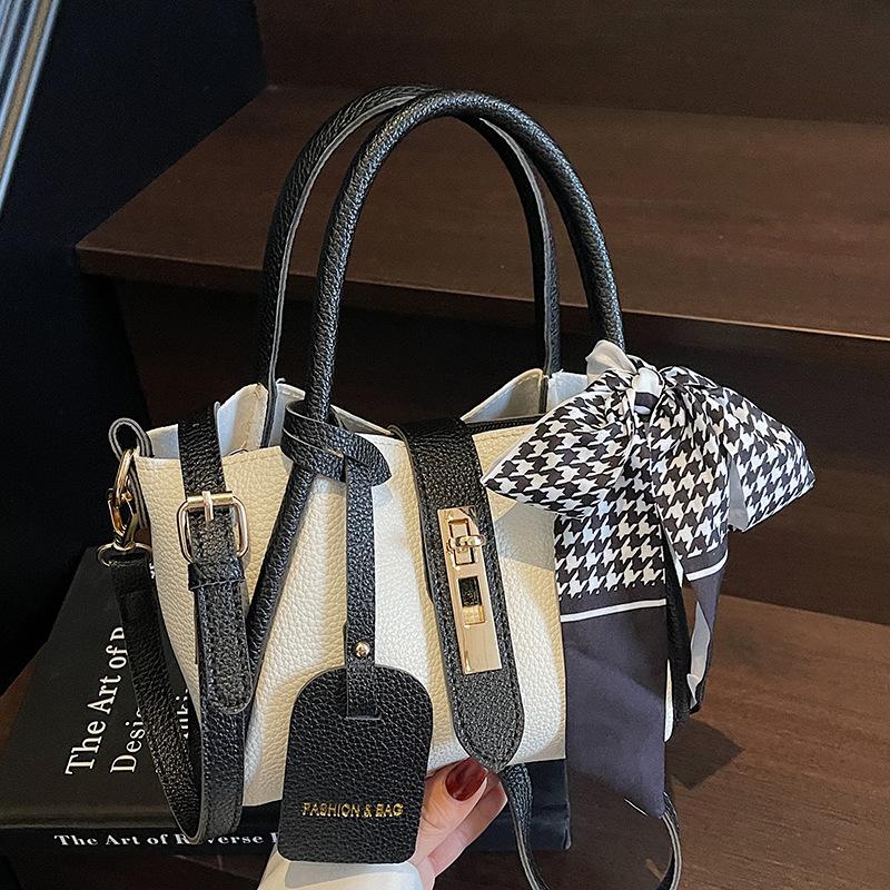 Popular new Korean version temperament casual contrasting color portable bucket bag women's commuting versatile premium texture messenger bag