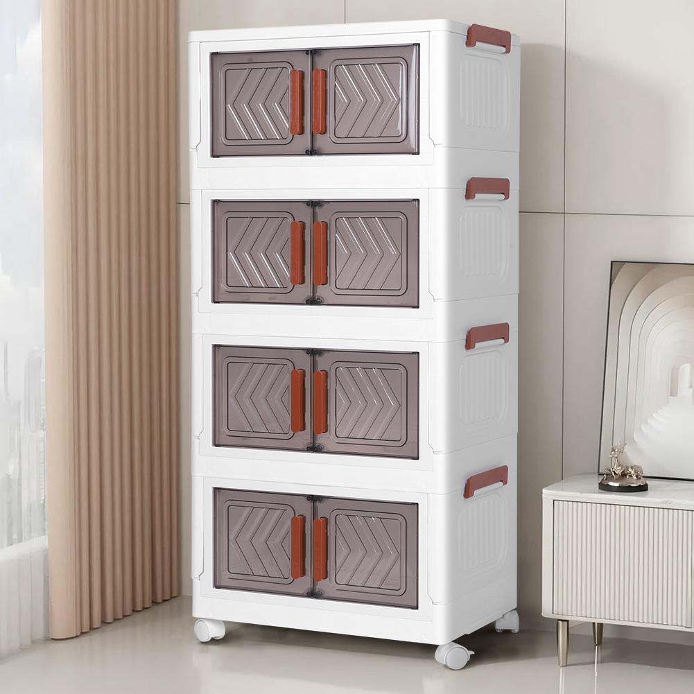 Dulap de depozitare pantofi cu 4 niveluri, Recipiente de depozitare din plastic, Cutie de pantofi din plastic cu uși și roți pentru expunere, Organizator pantofi