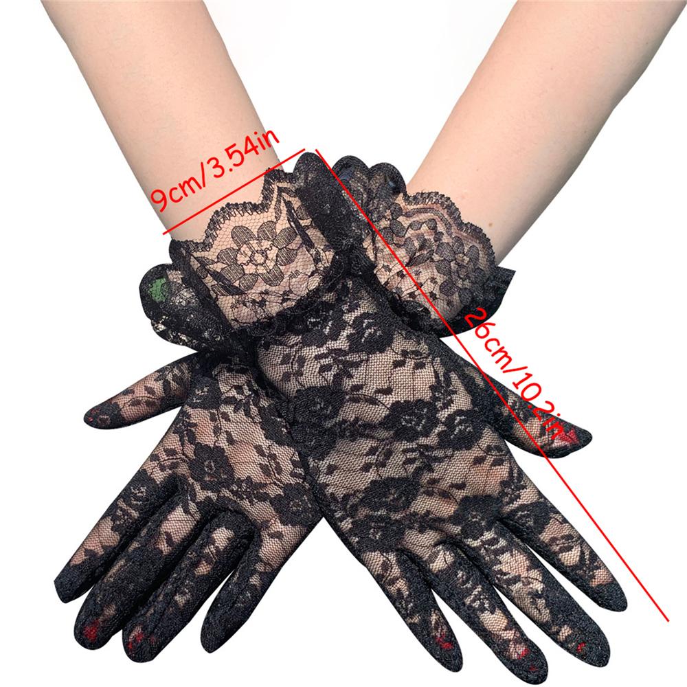 A Pair Vintage Women's Sheer Short Lace Gloves Floral Wrist-Length Fancy Costume Accessory for Derby Tea Party Dinner