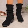 Lucyever Faux Suede Wedge Boots for Women 2024 Retro Pleated High Heels Ankle Booties Mujer Plus Size Slip On Autumn Boots Woman