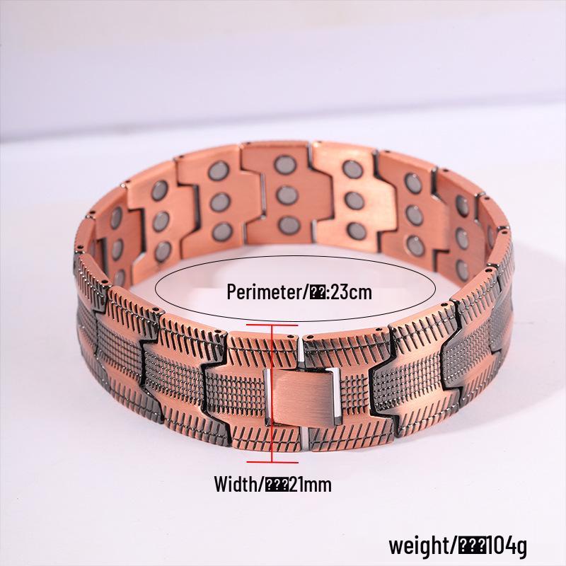 Brățară Magnetică Lată Retro pentru Bărbați, Cupru Roșu, Stil European și American, Bandă Magnetică pe Trei Rânduri.