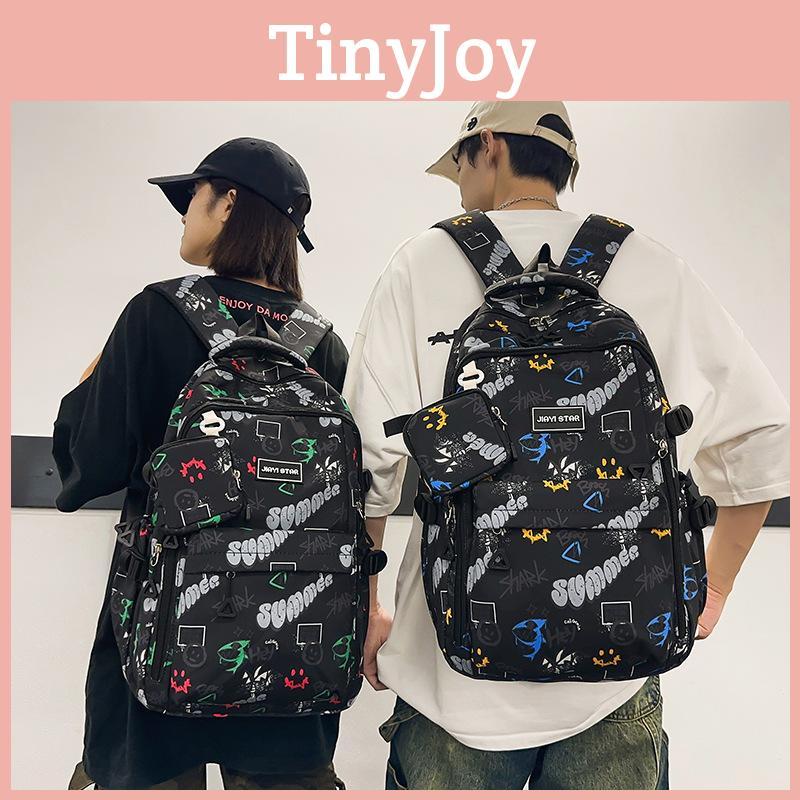 Fashionable Letter Shape Smiley Face Graffiti Large Capacity Student Backpack