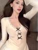 Introducing the 2025 Early Autumn Edition, this elegant long sleeve T-shirt for women combines style and comfort with its soft cotton material. Featuring a classic solid pattern, the T-shirt is adorned with delicate lace splicing, adding a touch of sophistication to your wardrobe. The square neckline enhances its chic appeal, while the bow detail provides a feminine touch. Perfect for the cooler months, this T-shirt effortlessly blends fashion and function.