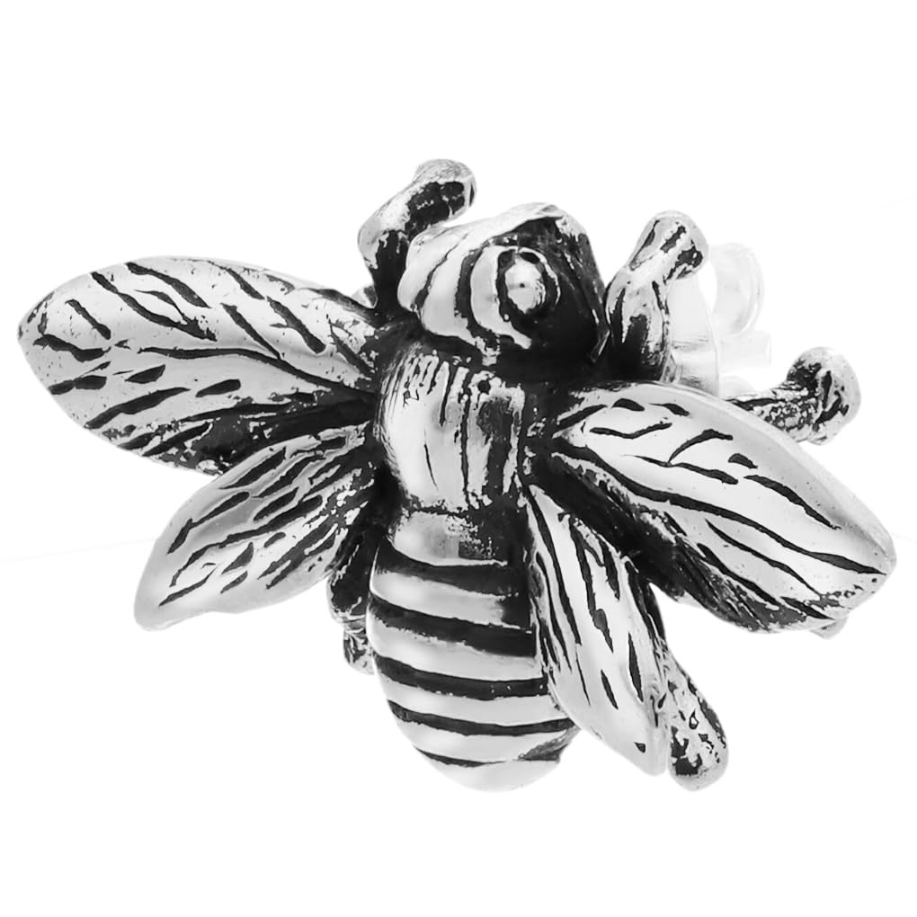 [Shinjuku Gin no Kura] Bee Stud Earrings, 925 Silver, Single Earring, 3D Realistic Insect, Living Creature Item