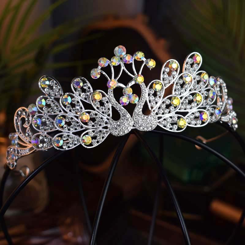 Korean Version Alloy Crown Princess Peacock Shaped Hair Accessory Colorful Girl Birthday Party Performance King Crown Super Fairy