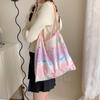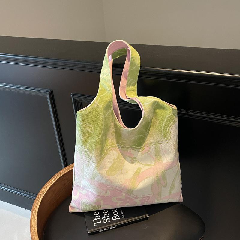 Summer small fresh underarm bag women's 2025 new pink and green color matching literary and artistic style canvas bag large-capacity shoulder bag
