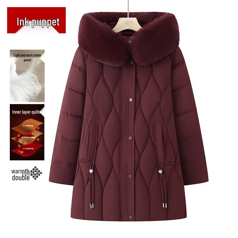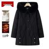 Mooou Palton de iarnă matlasat cu glugă de lungime medie pentru femei în vârstă