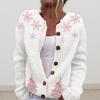 Cardigan de damă de Crăciun cu fulgi de zăpadă, la modă, casual, versatil, toamnă-iarnă, stil nou, alb, cu gât rotund și nasturi, tricotat