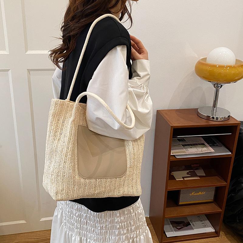 2025 new fashion retro shoulder bag large capacity shopping bag beach bag simple retro tote bag