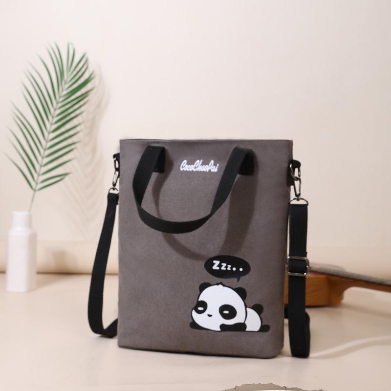 Tote bag Large capacity messenger bag Women's 2025 new panda printed canvas bag One shoulder messenger bag Tide