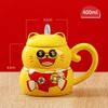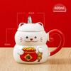 Joyful Mug Super Cute Animal Cartoon Ceramic Water Cup Large Caliber Fortune Cat Female Office Coffee Cup with Lid