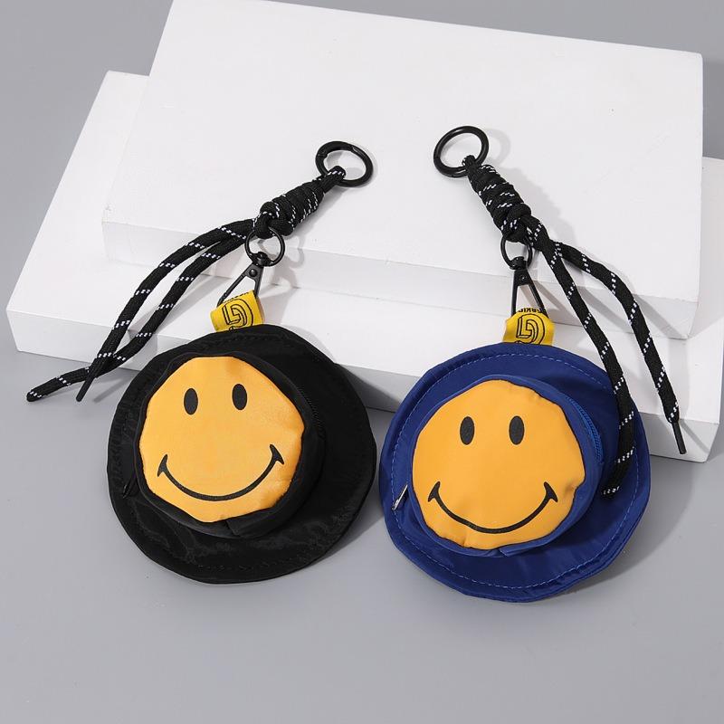 New personalized smiley face mini bucket hat cute earphone bag change bag niche portable creative keychain pendant