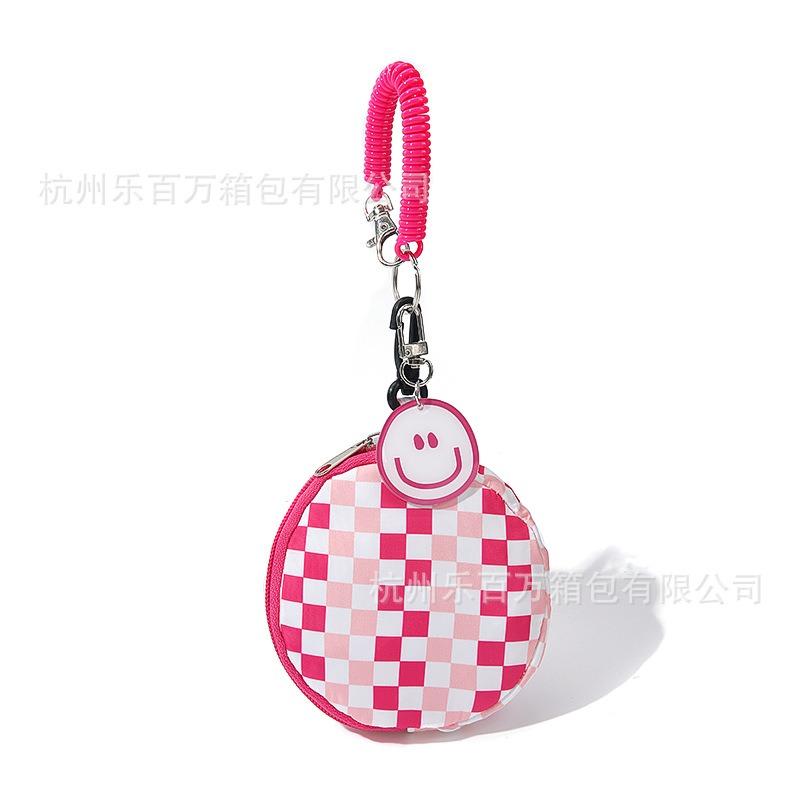 Original design Small change bag, earphone bag, pendant, schoolbag, pendant, checkerboard grid, trendy brand, smiley face, key bag, trendy.