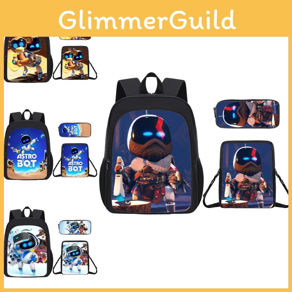 This Astro Bot-themed school backpack set includes a lightweight, breathable Oxford cloth double-strap backpack, a compact shoulder bag, and a pencil case, the set offers durability with reinforced stitching and moisture-resistant polyester lining. Ideal for students, it supports organized storage for school supplies and daily essentials. The ergonomic air-cushioned straps provide comfortable carrying during school activities, while easy maintenance involves wiping clean with a damp cloth.