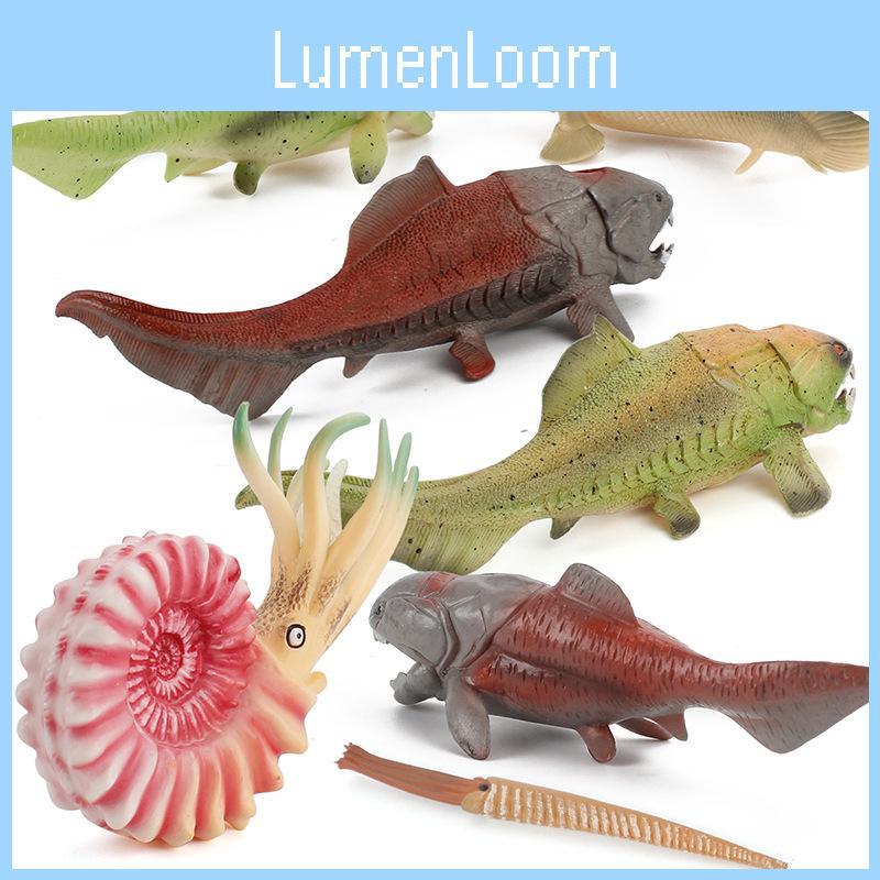 Acest set realist de modele de animale marine prezintă replici detaliate ale creaturilor marine antice, inclusiv peștele Dung, amonitul și nautilul. Fabricat din PVC durabil, fiecare piesă măsoară aproximativ 13 cm în lungime. Ideale pentru exponate educaționale sau decor cu tematică marină, aceste modele statice sunt ușor de curățat cu o cârpă umedă și sunt concepute pentru uz interior.