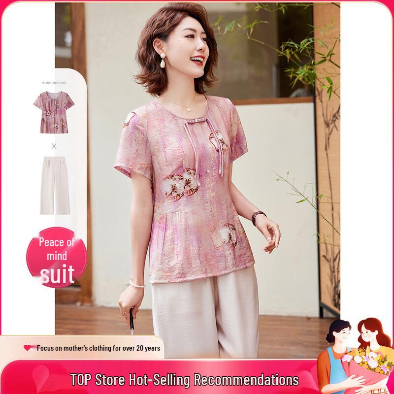 Past Summer New Chinese Style T-shirt and Pants Set