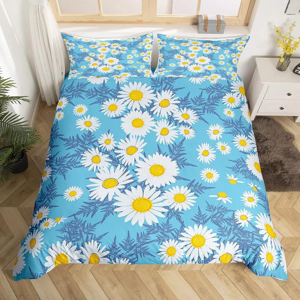 Yellow Daisy Duvet Cover Set Cute Floral Bedding Set For Kids Child Girls Garden Flowers King Comforter Cover With Pillowcase