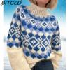 BITCED Women's High-Neck Color-Blocked Oversized Fashion Pullover Sweater