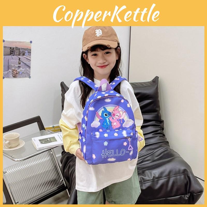 This children's backpack features a large capacity design with a durable nylon exterior and polyester lining,It supports breathable, wear-resistant use, making it suitable for daily kindergarten activities. The backpack includes an air-cushioned shoulder strap system for comfort and showcases playful cartoon Stitch graphics with colorful prints and alphabet accents. Easy to clean, it is ideal for boys and girls during school or outdoor outings.
