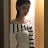 Sexy one-word shoulder striped long-sleeved knitted sweater women's autumn new pure desire spice girl slim-fitting short top
