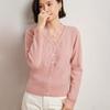 Lace splicing v-neck knitted cardigan jacket women's outer knitted sweater women's autumn and winter sweater with bottoming shirt top