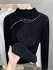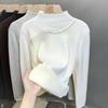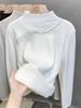 Fleece semi-turtleneck sweater women's integrated fleece thickened bottoming shirt autumn and winter new knitted sweater beaded top tide