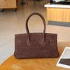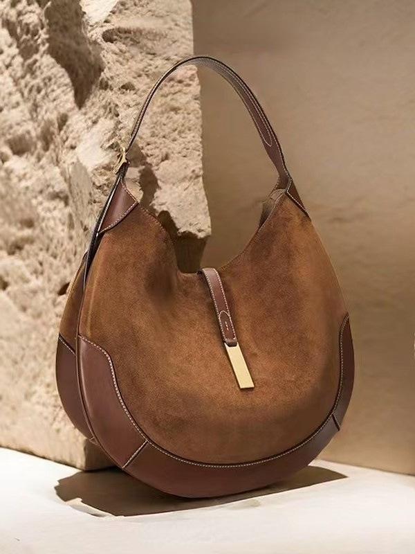 Geantă Tote Semilună Ecvestră Retro din Piele Suede - Geantă de Mână Trendy Tip Gogoașă pentru Subraț