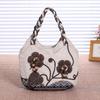 Stil boem, model împletit manual, geantă groasă, ușoară, cu fermoar, design casual de genți pentru femei, cu broderie florală și accente de ciucuri