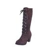 Bocanci de damă cu vârf rotund și toc gros, Stil francez, Culoare solidă, Bocanci Martin, Pantofi casual mărime mare pentru toamnă-iarnă